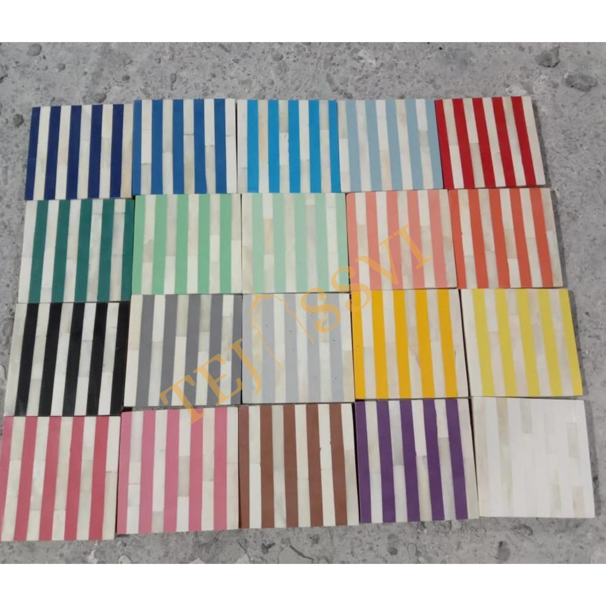Each piece has been handcrafted in a process that can take weeks using honorably sourced Bone / Bone Delicately carved pieces of bone/ MOP have been individually inlaid onto a wooden frame in an elaborate pattern. Layers of colored resin are then used to fill around the bone/mop. Finally, the backside and inside areas are painted with matching colors,,